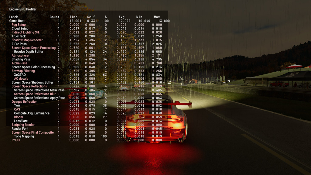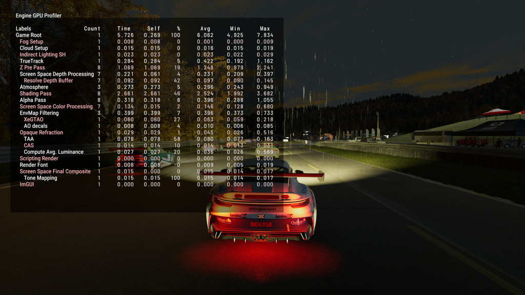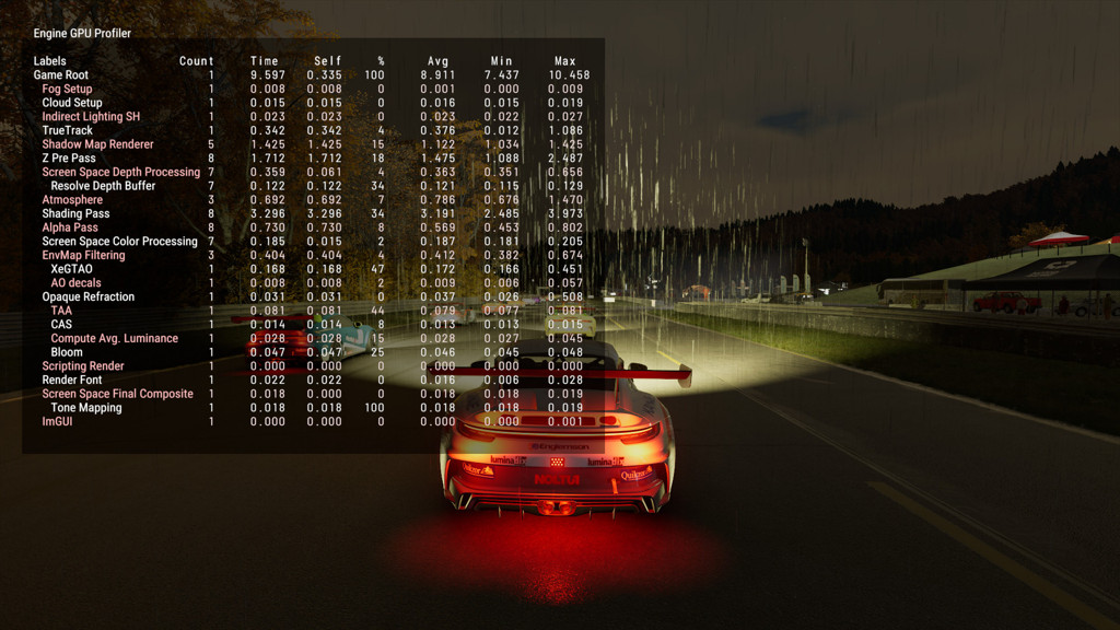 But hey, this time we have the profiling data available in the game, so we don’t need to settle for comparing only by eye! I won’t be breaking down every single metric here, but you can compare how the CPU and GPU costs of options increase with the details going up. If you’re struggling to hit satisfactory frame rates, this may provide useful insight on what options to turn down.